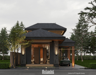 Trao đổi với các kiến trúc sư CĐT muốn khu vực sảnh có được sự nổi bật và nguy nga. Tuy nhiên vẫn phải gợi lên được sự ấm cúng, sang trọng. Nắm bắt được nhu cầu của gia chủ, kiến trúc sư của BetaViet đã chủ động thiết kế khu vực mái sảnh ấn tượng. Giải pháo biến khu vực này phải là điểm nhấn chính yếu. Và phải làm toát lên tinh thần chung của căn biệt thự.