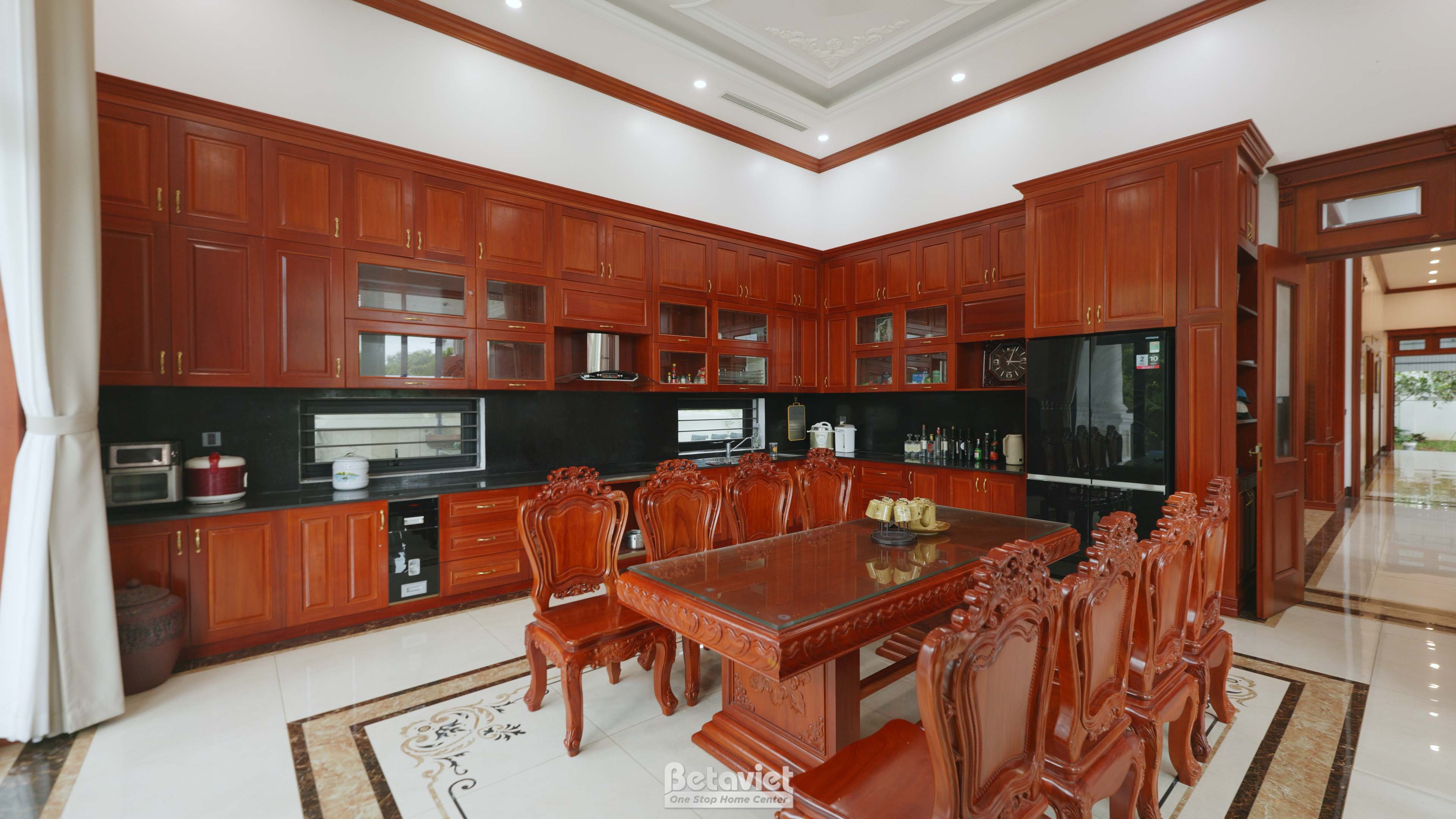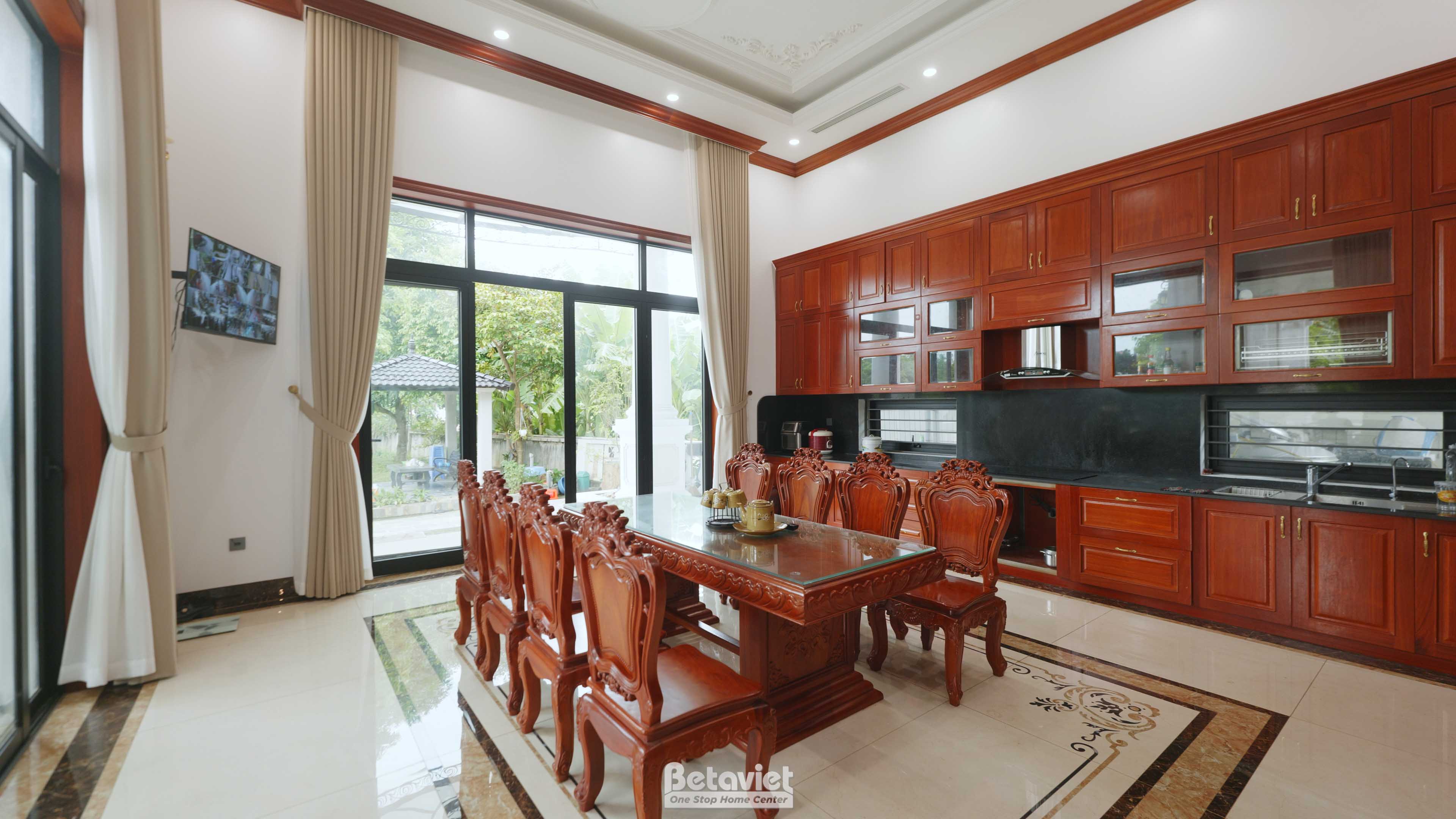 Một trong những yếu tố tạo nên sức hút của biệt thự tân cổ điển chính là phần thi công nội thất tân cổ điển. Không gian bên trong được thiết kế với phong cách sang trọng, tinh tế, thể hiện rõ cá tính và gu thẩm mỹ của chủ nhân. Nội thất tân cổ điển thường sử dụng các gam màu nhẹ nhàng như trắng, vàng đồng, nâu gỗ kết hợp với chất liệu cao cấp như gỗ tự nhiên, da, đá marble, kim loại mạ vàng. Các chi tiết phào chỉ, đèn chùm pha lê, rèm cửa cao cấp được bố trí hài hòa, tạo nên không gian sống vừa cổ điển, vừa hiện đại. Phòng khách được xem là điểm nhấn quan trọng nhất với trần cao, ánh sáng ấm áp và đồ nội thất tinh xảo. Phòng bếp và phòng ăn được thiết kế liên thông, tiện nghi và đậm chất châu Âu, giúp các thành viên trong gia đình dễ dàng quây quần bên nhau.