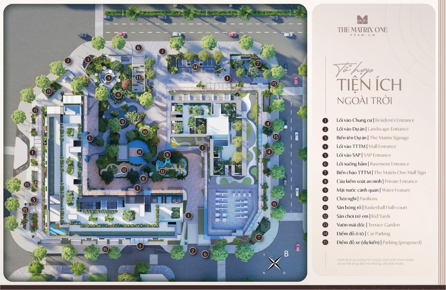 The Matrix One được quy hoạch theo mô hình đô thị hiện đại với mật độ xây dựng chỉ chiếm 30% tổng diện tích, trong khi 70% còn lại dành cho không gian xanh và các tiện ích cộng đồng. Triết lý thiết kế này giúp tạo ra một môi trường sống thoáng đãng, trong lành giữa lòng thủ đô đông đúc.