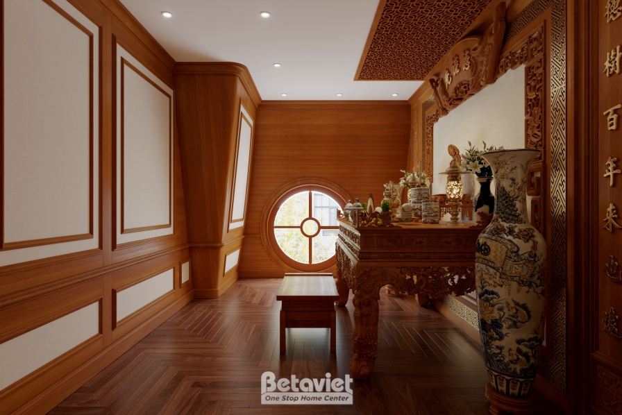 Tổng thể, phòng thờ không chỉ là nơi thực hiện các nghi lễ tâm linh mà còn là không gian kết nối giữa quá khứ và hiện tại, giữa truyền thống và cuộc sống hiện đại. Trong tổng thể biệt thự NT4104398, đây chính là khu vực mang giá trị tinh thần sâu sắc, góp phần hoàn thiện một không gian sống đẳng cấp, nơi vật chất và văn hóa cùng song hành, tạo nên bản sắc riêng biệt cho gia chủ.