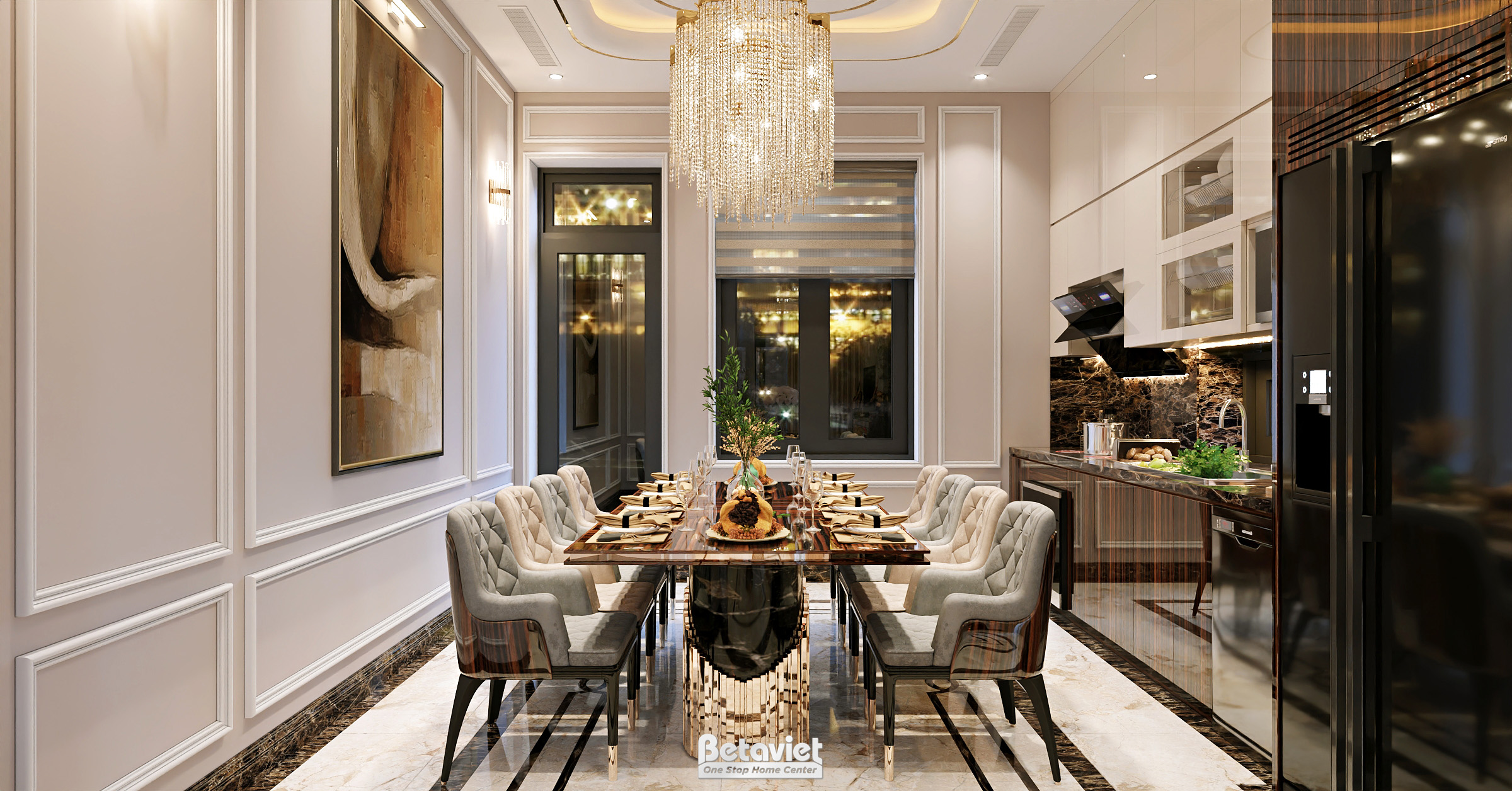 Bên cạnh đó, Betaviet cũng rất chú trọng đến việc phối màu cho nội thất sao cho hài hòa với tông màu chủ đạo của căn phòng. Sự kết hợp tinh tế giữa màu sắc, chất liệu và kiểu dáng sẽ mang đến hiệu ứng thị giác tuyệt vời, nâng tầm đẳng cấp cho tổng thể không gian.