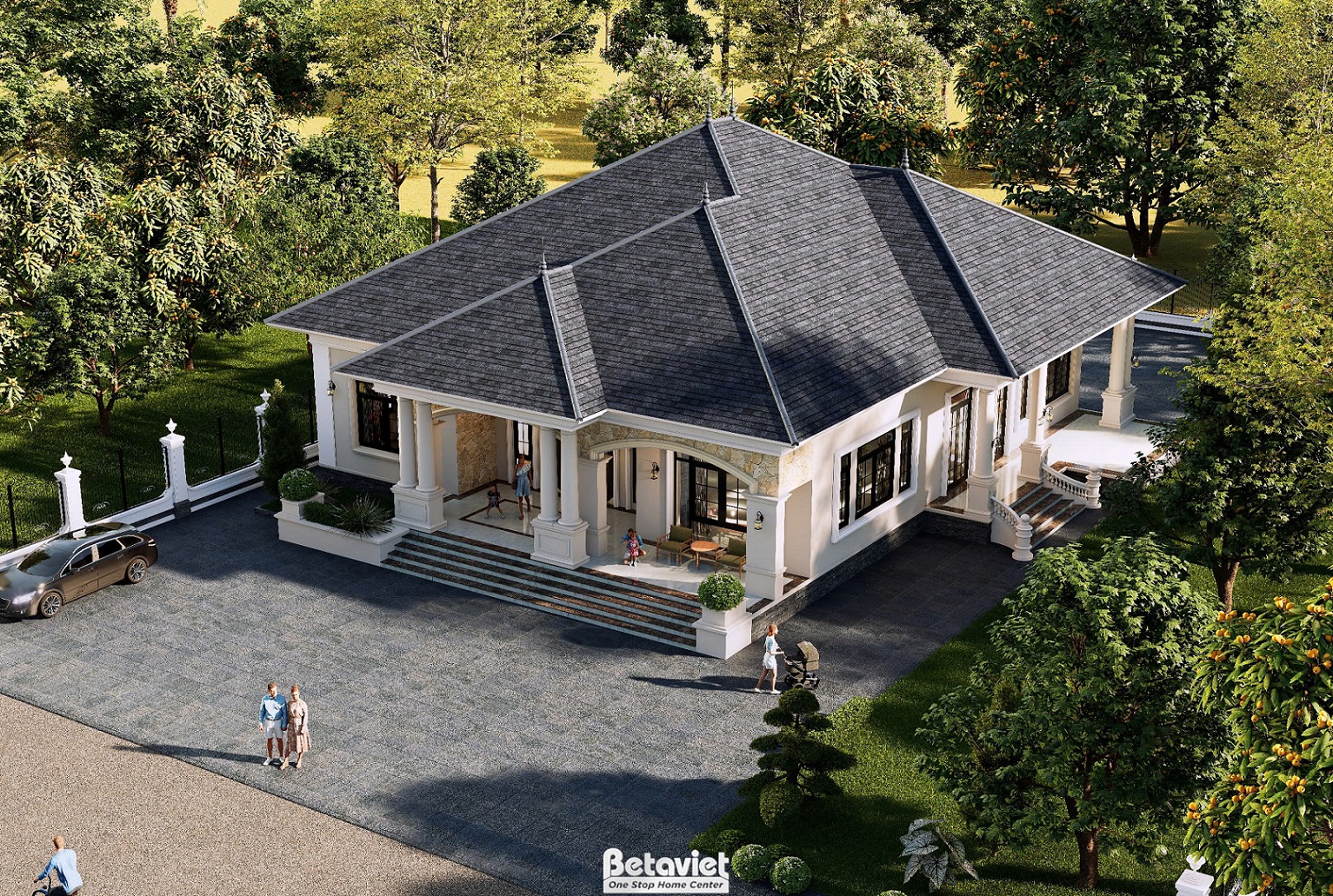 Trang chủ » Thiết kế thi công kiến trúc » Thiết kế biệt thự 1 tầng phong cách tân cổ điển tại Nghệ An KT2000235-1