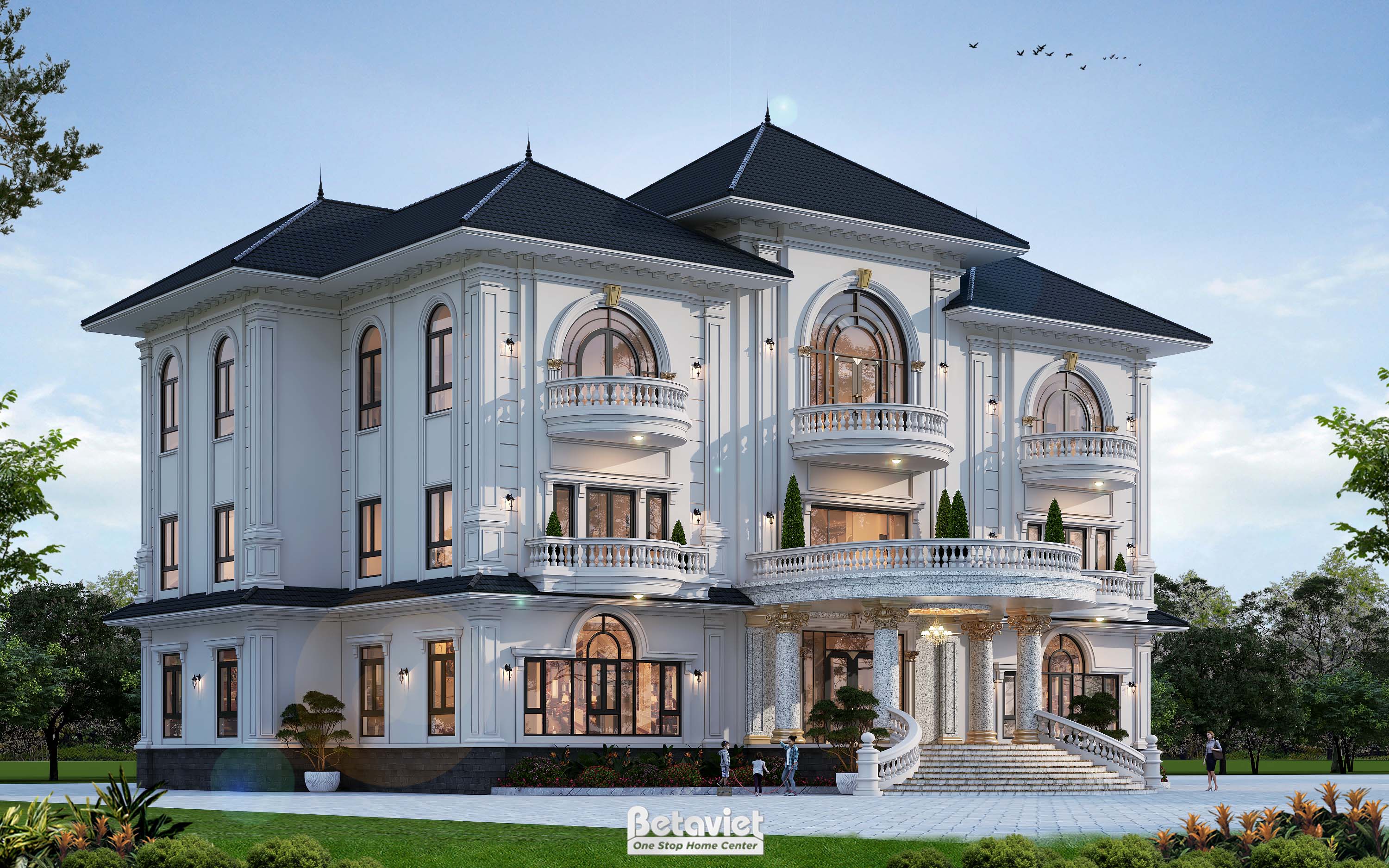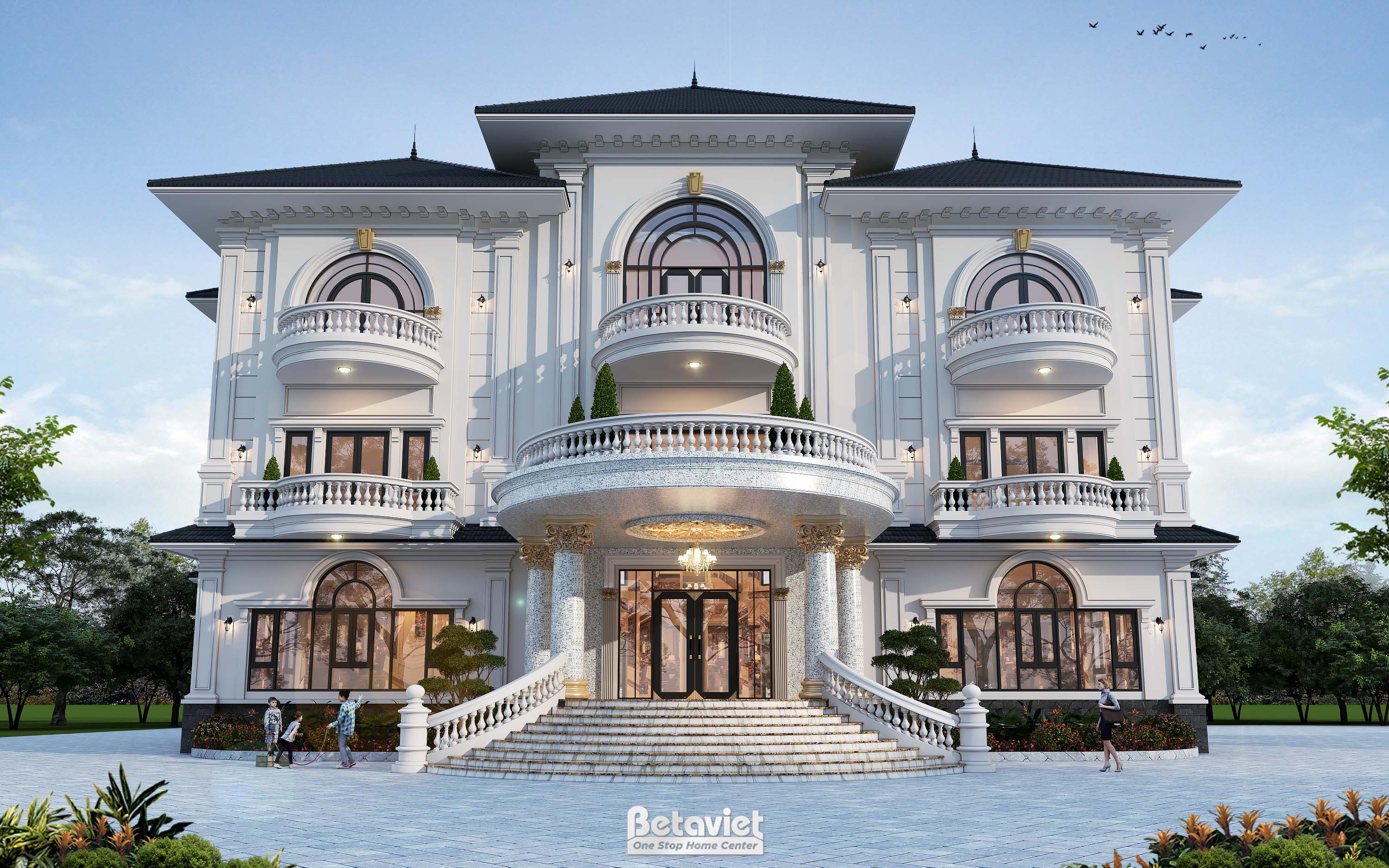 Trang chủ » Thiết kế thi công kiến trúc » Thiết kế dinh thự 3 tầng phong cách tân cổ điển tại Hà Nội KT8006222