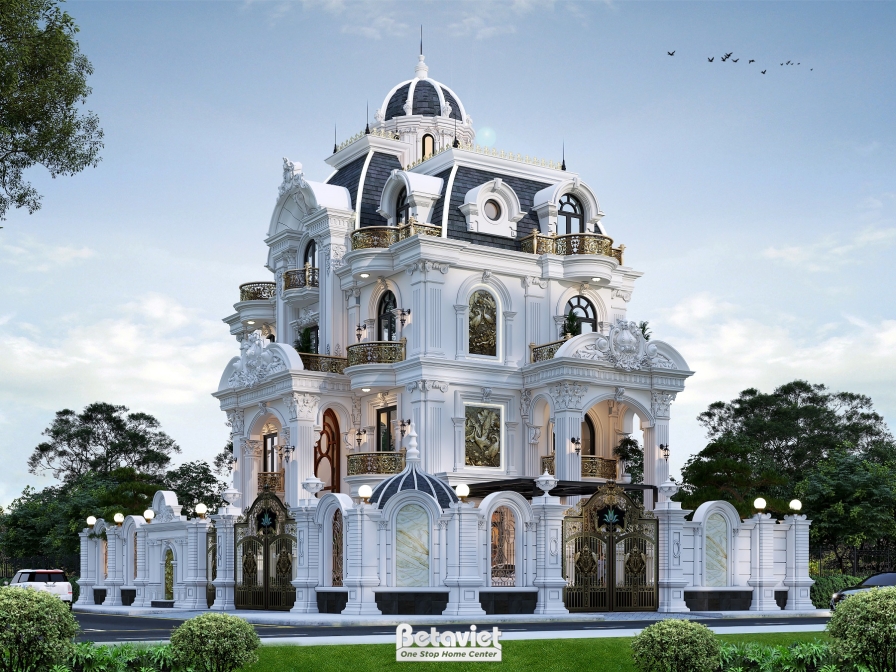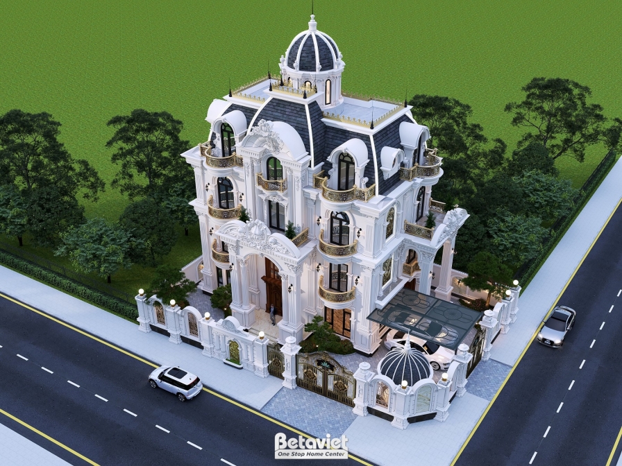 Thiết kế lâu đài 4 tầng phong cách tân cổ điển kiểu pháp tại Thanh Hoá KT2009574