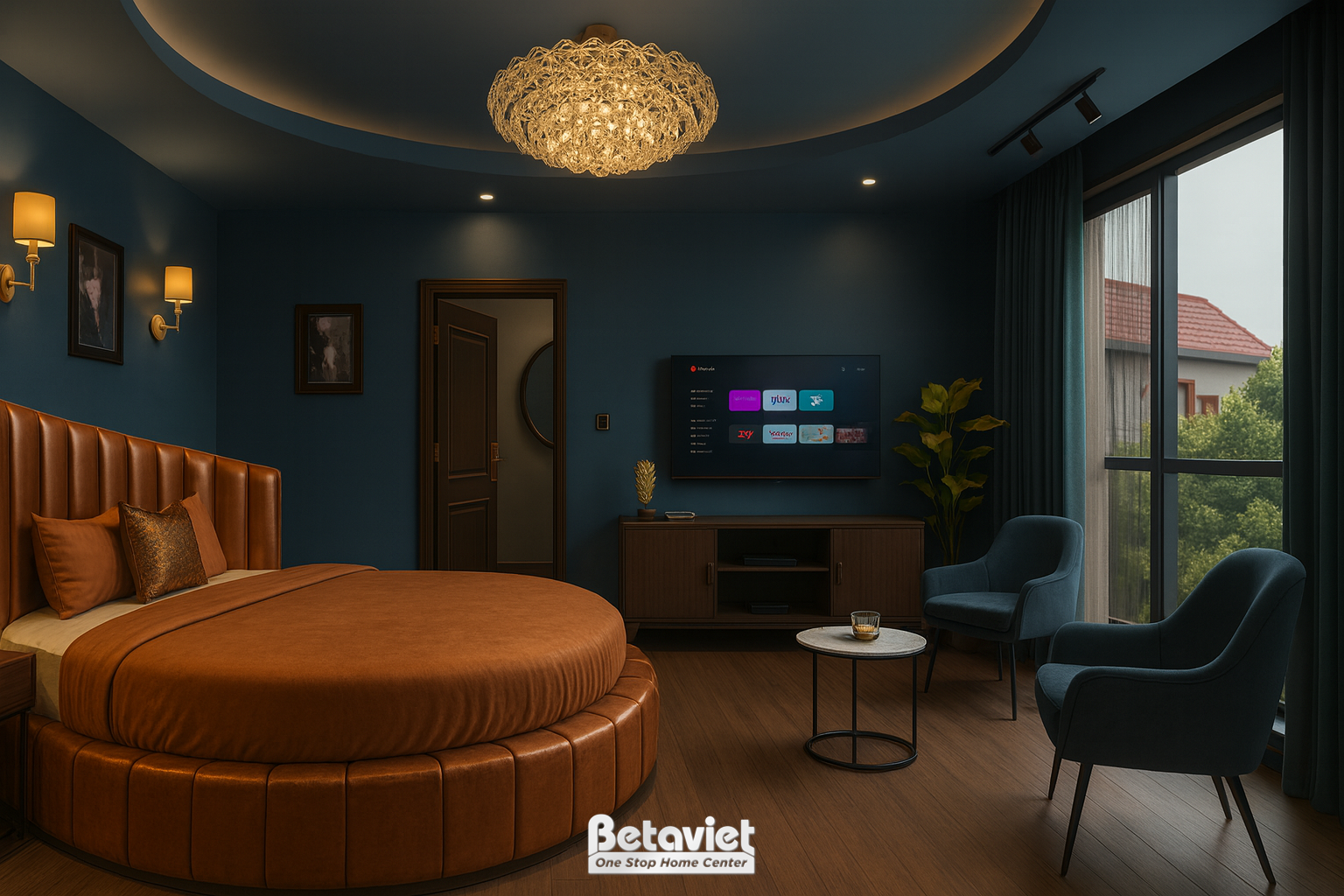 Dạng phòng này được các chủ đầu tư chú trọng lắp đặt hệ thống nội thất hoàn hảo. Chất lượng đồ nội thất đều là hàng tốt và nổi tiếng. Trang thiết bị đồ dùng đầy đủ từ: tivi, điều hòa hai chiều, đèn chùm trang trí, loa âm thanh chuẩn…đầy đủ cả bàn làm việc, quầy bar nhỏ đáp ứng nhu cầu nghỉ dưỡng của khách hàng.