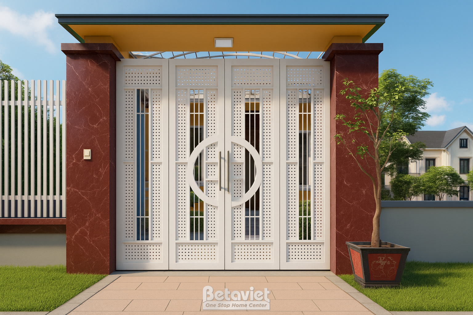 Với thiết kế 2 cánh cửa vừa tầm mắt, không quá lớn nhưng đủ để đón chào khách tới thăm nhà. Những căn biệt thự hiện đại, hay những căn biệt thự nhà phố, khu đô thị dự án cao cấp cũng rất ưu tiên sử dụng mẫu cửa này.